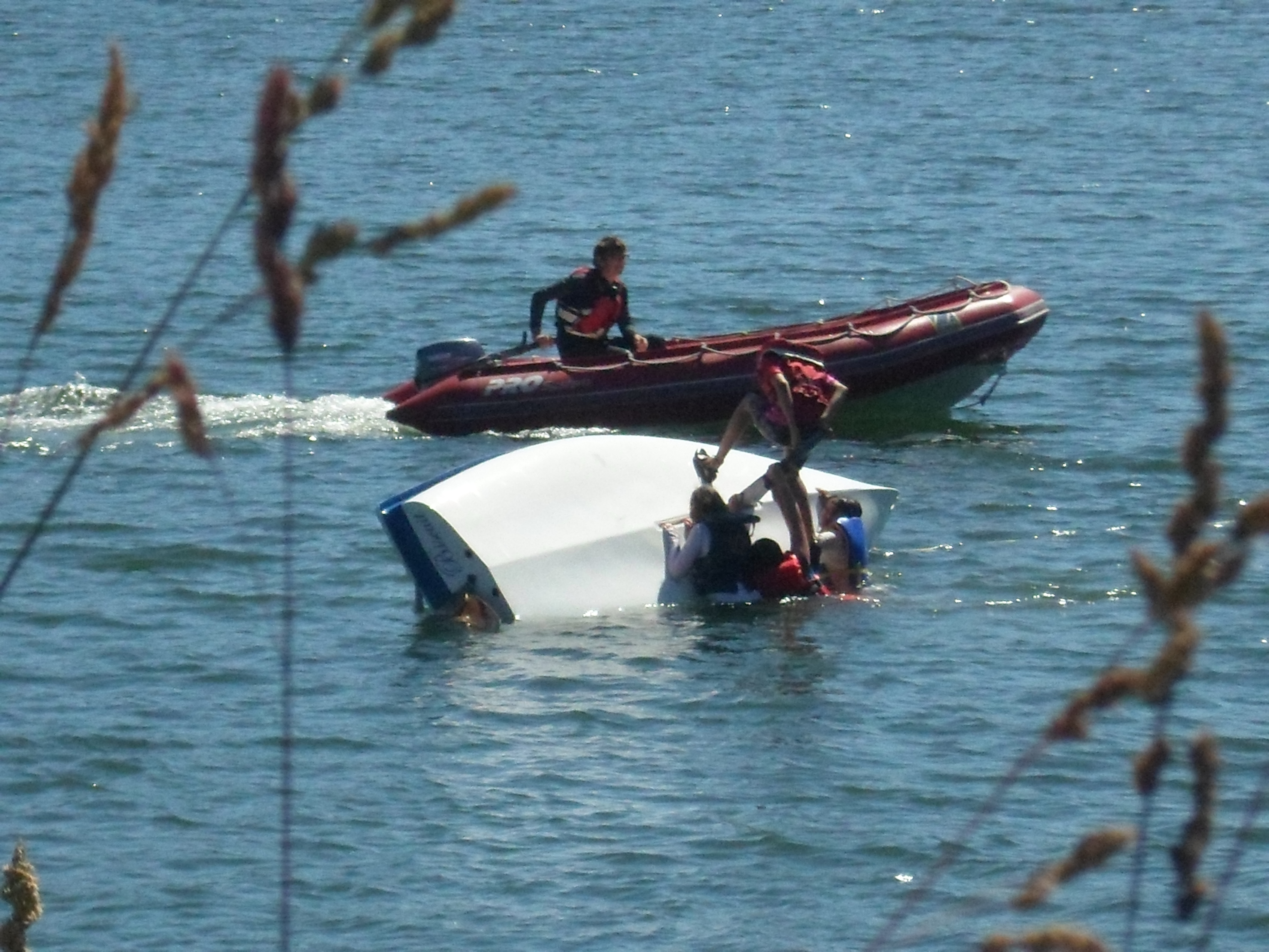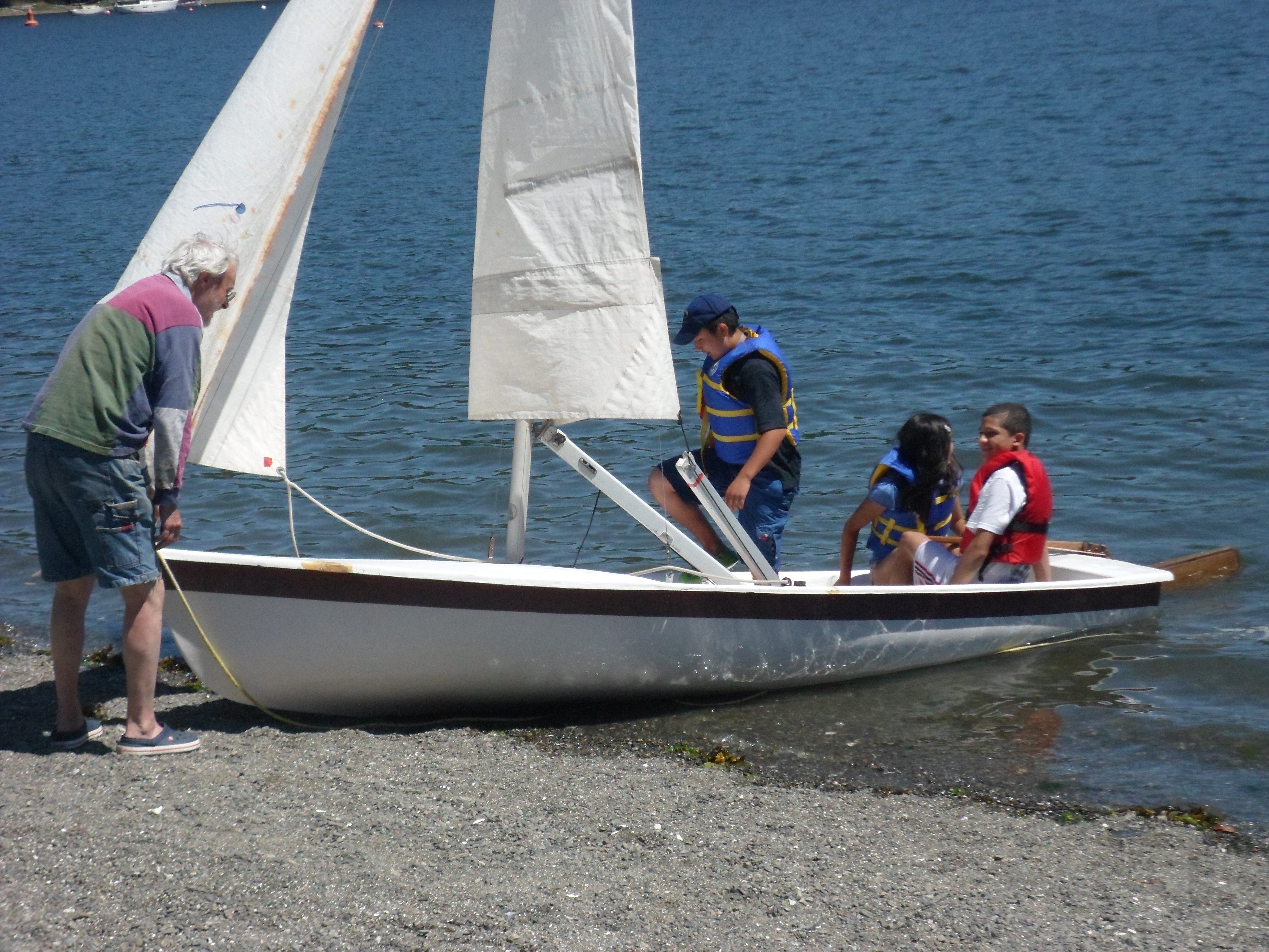 Day 2 represented our capsize event. Traditionally held at the end of the course, Capsize Day has been advanced as kids self-confidence noticeably grows after a successful rescue. Instructor Nathan provided a demo, walked attendees through the steps, then assigned teams and circled in case of any needed assistance. Our students were troopers with the final group opting for a cold swim to the beach to bask in their success.