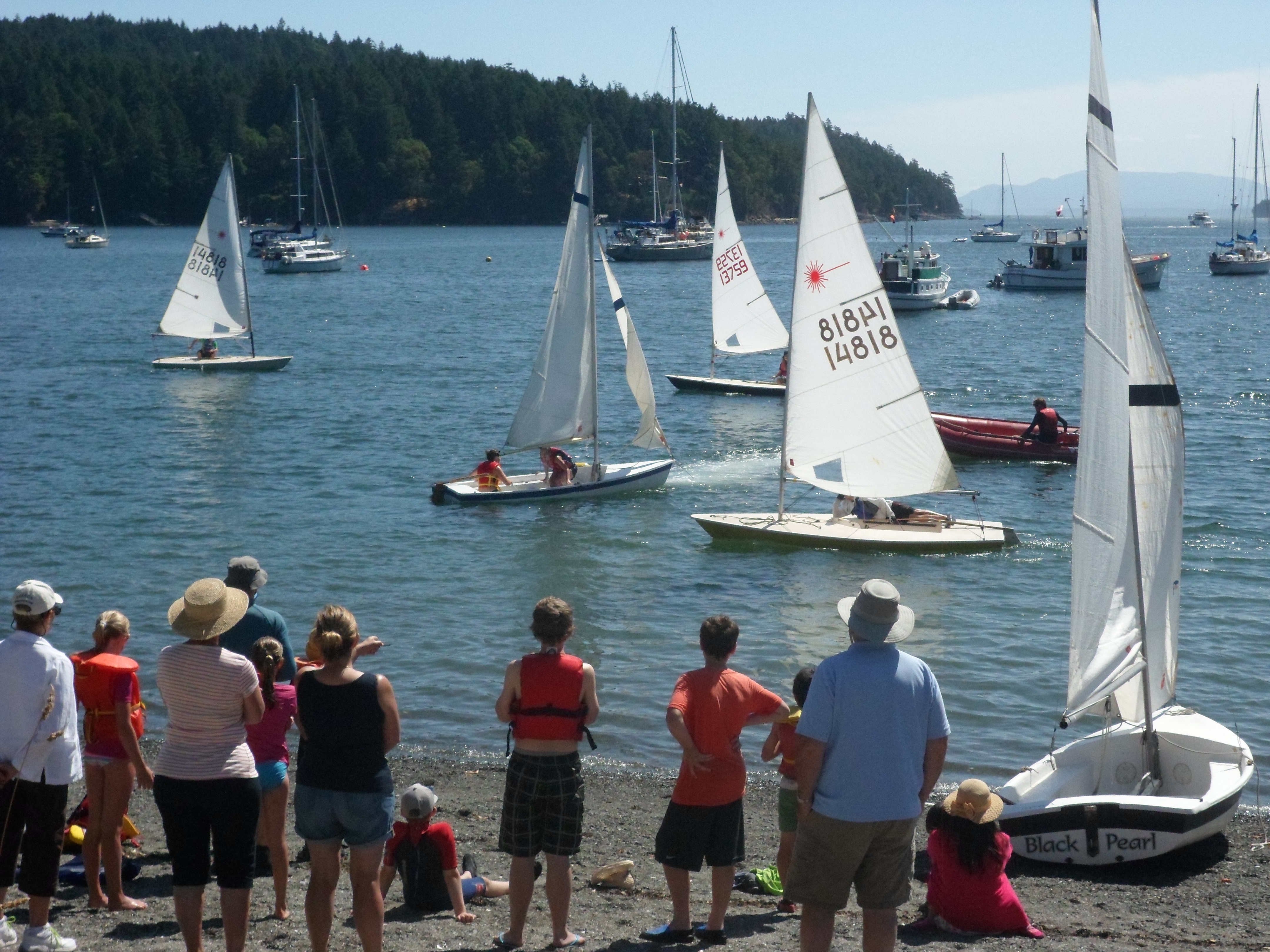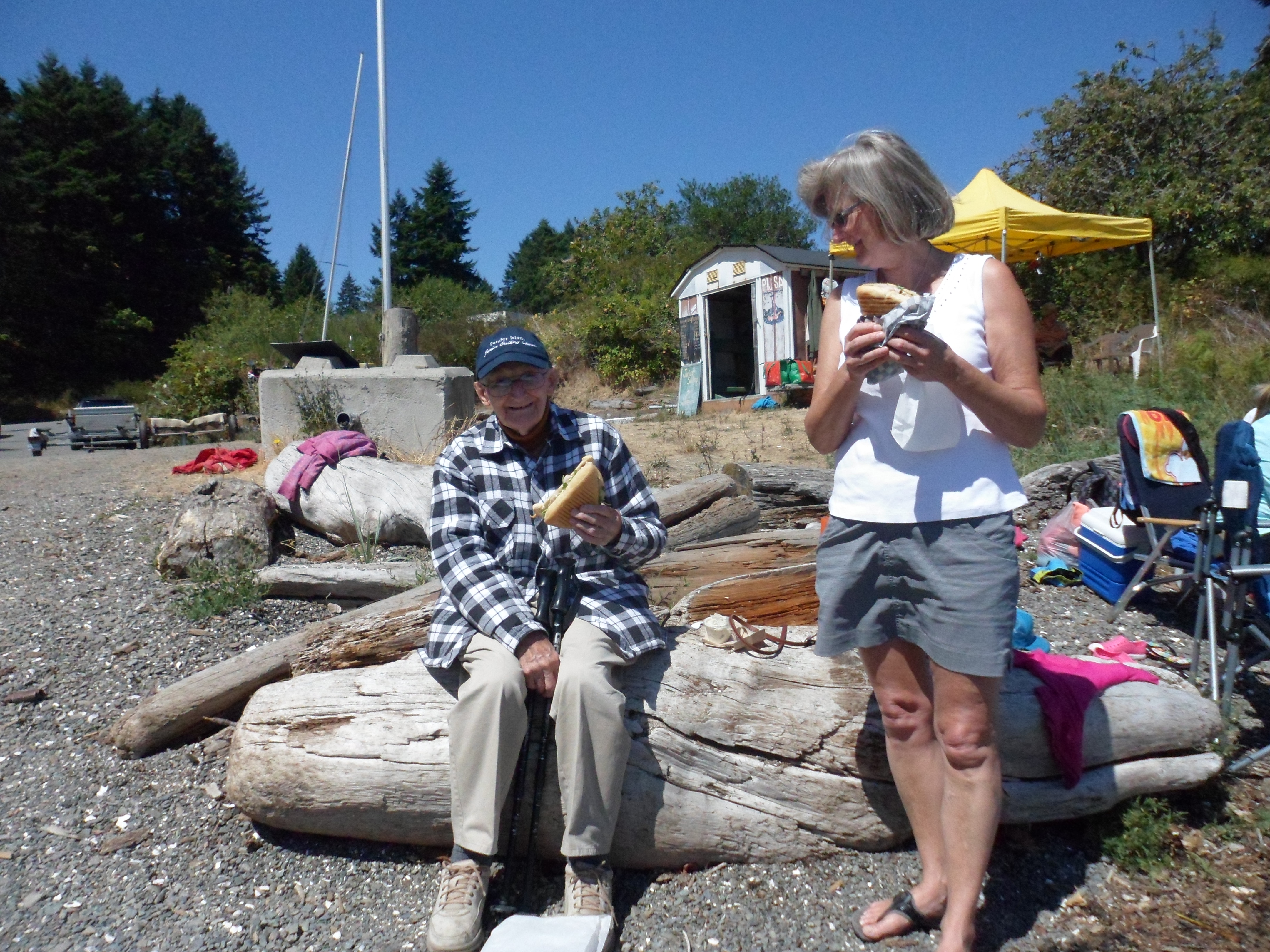 People are what makes the difference in any endeavour. Today we hosted two generational extremes. Our Honorary Board Member is a former Commodore with a stellar resume stretching from fighter jets and commercial planes to water craft. Peter is a young 93 – with a mind sharper than any boat can tack – who self-propels with a pair of walking sticks for balance. Accompanied on this occasion by daughter Joanne visiting from Montreal, he regularly visits and regales us with stories in the air. His presence contrasts with an equally loved Pender family originally hailing from Japan. Our newest future recruit is ensconced in the safety of her ever-buoyant mother’s envelope while Dr. Don introduces other youngsters to the water. We salute all past and future sailors and remain enriched by their daily presence.